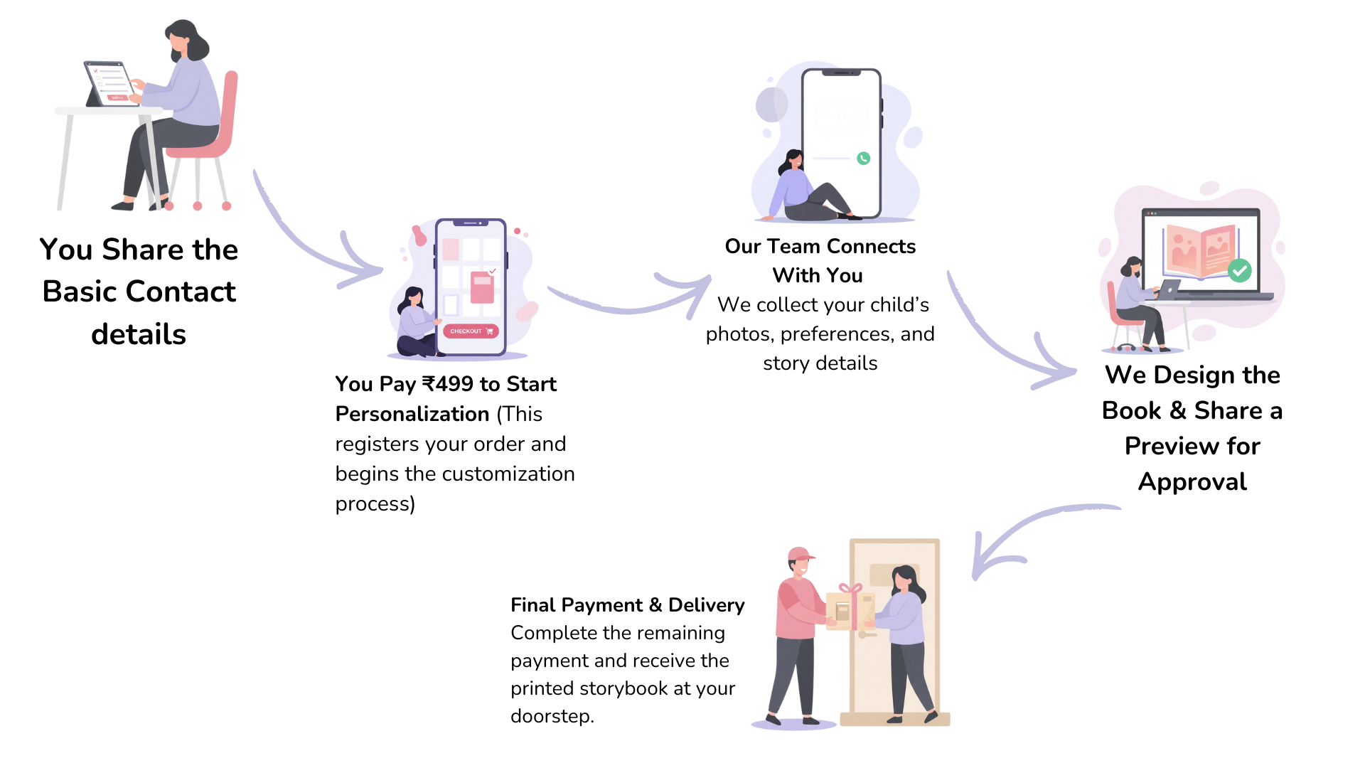 1. Pay ₹299 today to begin your child’s personalized storybook